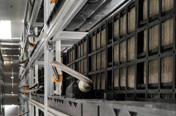 The system’s cartridges, equipped with evaBREEZE® technology, are connected to a water source, where water is evenly distributed over the evaporative pads. Each row of pads is linked to a water redistributor, ensuring a consistent and controlled water flow without using open water or mist.
